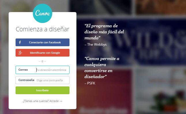 Sin duda una de las herramientas online más completas para realizar diseños. Registrarse es muy fácil, puedes realizarlo a través de Facebook, Google+ o por tu e-mail. Una vez dentro tienes un gran número de plantillas con tamaños predefinidos para elegir, como tamaño de imagen para post en Facebook, Twitter, Instagram. También tienes las medidas para la cabeceras de Facebook, Twitter, Tumblr, y muchos más tipos de diseños al igual que elegir el tamaño con el que deseas trabajar.
